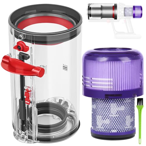 Dammbehållare och filterset kompatibel med Dyson V15 V11 SV14 SV15 SV22, ersättning för behållare 970050-01/965443-01 och filter 970013-02/970013-03