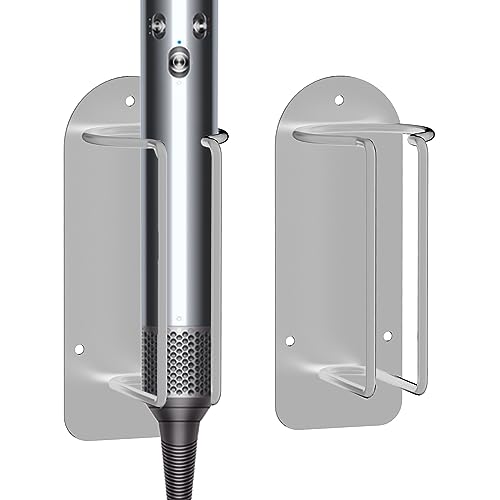 Adorila 2-pack väggmonterad locktångshållare, hårstylingverktygshållare, hårverktygshållare kompatibel med Dyson Airwrap och Dyson Corrale (silver)