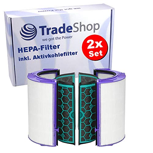 2x Trade-Shop HEPA-filterbyte + aktivt kolfilter kompatibel med Dyson Pure Cool TP04 TP05 HP04 HP05 DP04 DP05 luftrenare ersätter 969048-03 969048-01