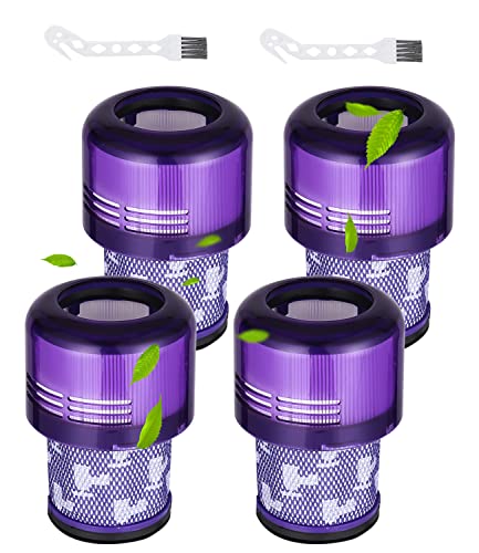 FAOKZE 4-pack filter för Dyson V11, ersättningsfilter för Dyson V15, V11, SV14, Cyclone, Animal Absolute Vacuum, dammsugare, med 2 en rengöringsborste, byt ut DY-970013-02 och 97001302