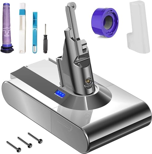 Powtree 6 000 mAh batteri för Dyson V8, ersättningsbatteri för Dyson SV10 kompatibel med V8 Animal Absolute Fluffy Motorhead sladdlös dammsugare (2 filter 1 skruvmejsel 3 skruvar 1 borste)