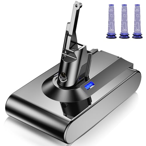 Morpilot 6 500 mAh batteri för Dyson V8 SV10, kompatibelt med Dyson SV25, absolut djur, motorhuvud, fluffigt, parkett, sladdlöst vakuum, med 2 st tvättbara filter, 21,6 V