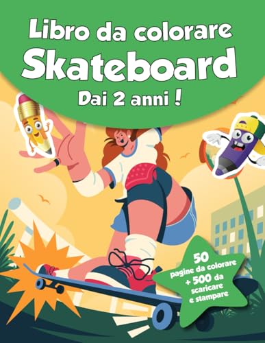 Libro da colorare per bambini - Skateboard (dai 2 anni): 50 pagine da colorare + 500 da scaricare e stampare!
