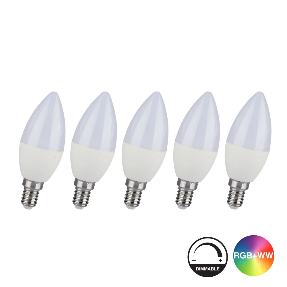 5 st. RGBW LED-lampa - 4,8W, RF-fjärrkontroll, dimbar, E14 - Dimbar : Via fjärrkontroll, Kulör : RGB + Varm Vit