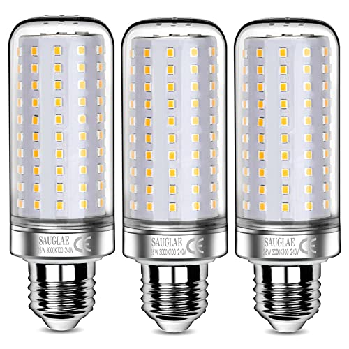 Sauglae LED-lampor 26W, motsvarande 200 W glödlampa, 3 000 Lm, 3 000K varmvit, E27 Edison-skruvar, 3 st