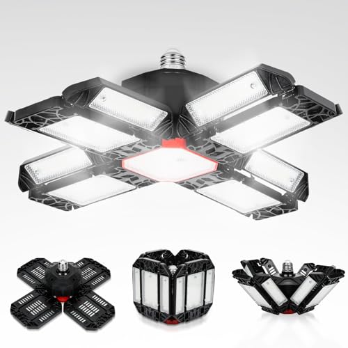 Tubiaz 200 W LED-belysning, garage, 2 0 000 LM, 6 500 K, deformerbar taklampa med 12 justerbara paneler, E26/E27 LED-verkstad E26/E27, garage, för källare, butik, lager