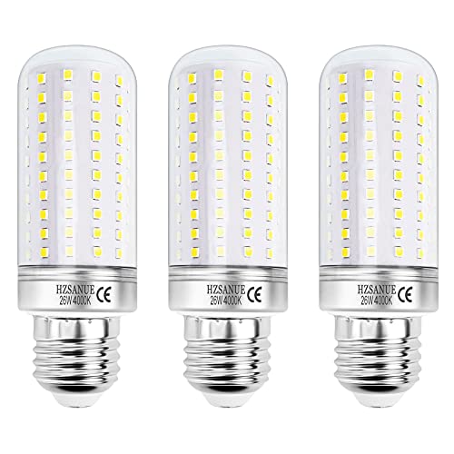 HZSANUE E27 LED Majs Glödlampor 26W, 4000K Naturligt vit, 2900LM, Edison Skruv Glödlampor, 200W Glödlampor Motsvarande Glödande, 3-pack