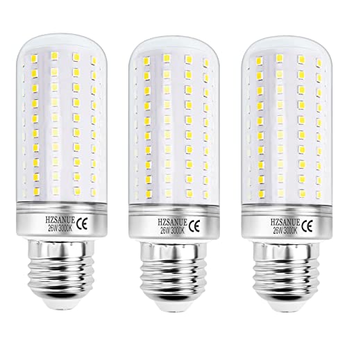 HZSANUE E27 LED Majs Glödlampor 26W, 3000K Varm Vit, 2900LM, Edison Skruv Glödlampor, 200W Glödlampor Motsvarande Glödande, 3-pack