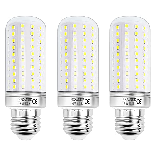 HZSANUE E27 LED Majs Glödlampor 26W, 6000K Dagsljus Vit, 2900LM, Edison Skruv Glödlampor, 200W Glödlampor Motsvarande Glödande, 3-pack