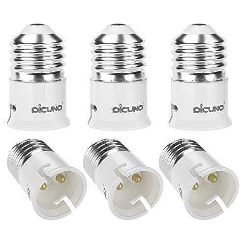 DiCUNO E27 till B22 omvandlare för lamphållare, Uttag för glödlampor och LED-lampor, Maximal effekt 200W, 0~250V, 165 grader värmebeständig, 6-pack