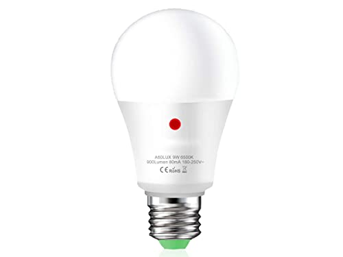 EXTRASTAR E27 LED-lampa dagsljussensor, E27 ljussensor glödlampa 9 W, kall vit 6 500 K, LED-glödlampa skymningssensor, 2 stycken