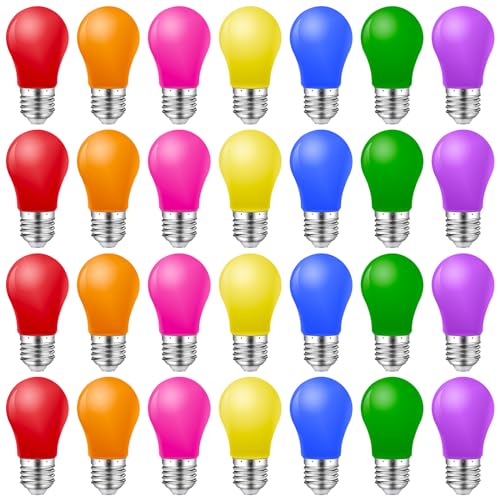MZYOYO Färgglada glödlampor E27 2W, färgglad glödlampa E27 LED-lampa, E27 färgglada glödlampor, E27 färgglada lysdioder för ljusslingor, fest, juldekoration, röd grön blå orange gul rosa