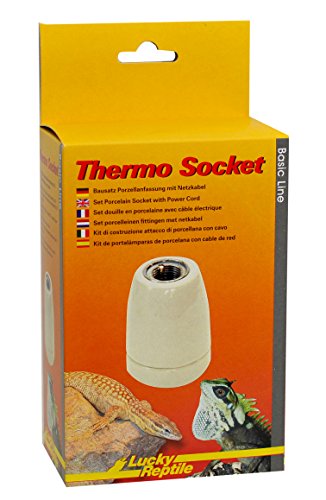 Lucky Reptile Thermo Socket - Porslinssockel med gänga - E27 lampsockel med nätkabel - Sockel med gängstång och monteringsmaterial - kompatibel med lampor upp till 150 W - Terrariumtillbehör