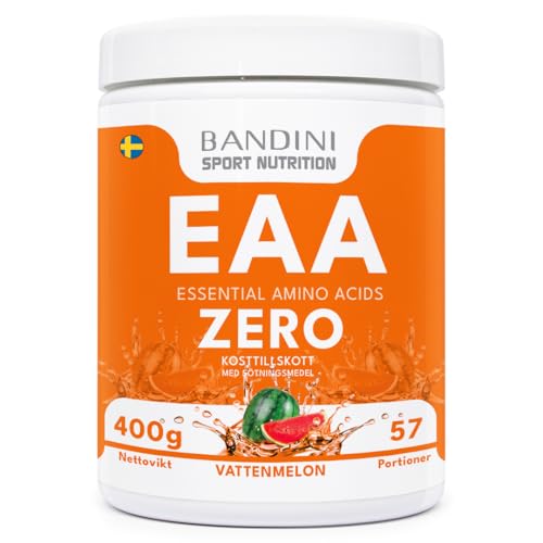 Bandini® EAA 400 g Pulver, Med 9 fermenterade och förädlade essentiella aminosyror BCAA 2:1:1, Essentiellt aminopulver, Muskelåterhämtning, Intra Pre Post Workout, 100% vegan med smak av vattenmelon