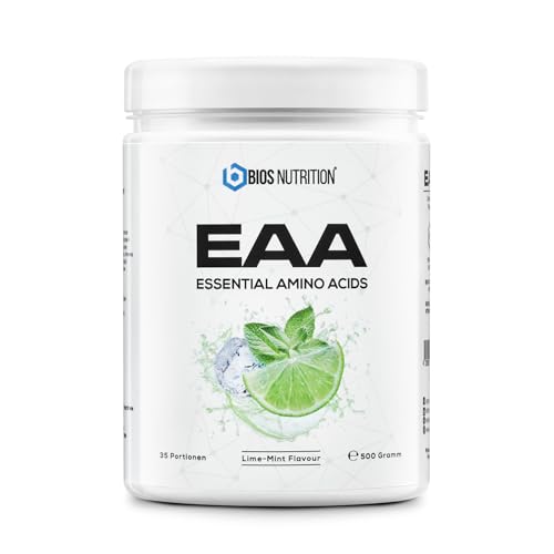 EAA-pulver LIME MINT 500gr - essentiella aminosyror - 11gr protein per portion - utan dålig eftersmak - vegan & högdoserat - BIOS Nutrition (Tillverkad i Tyskland)