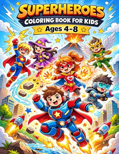 Superheroes Coloring Book: 25+ Action-Packed Coloring Pages with Superheroes, Capes, Masks, Lightning Bolts & Cityscapes | For Girls and Boys Ages 3–8 ... Easy Designs for Hours of Heroic Coloring Fun