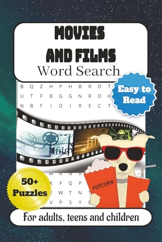 Movies and Films Word Search Puzzle Book: Word Searches with Easy to Read Print about Blockbusters, Action, Theatre and More| 6x9 inches, 110 pages| ... for Puzzle lovers, Holidays, Vacations, etc