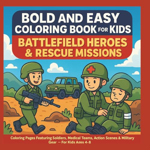 Bold and Easy Coloring Book for Kids: Battlefield Heroes & Rescue Missions: Coloring Pages Featuring Soldiers, Medical Teams, Action Scenes & Military Gear – For Kids Ages 4–8