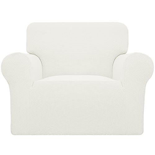 Easy-Going Stretchigt stolsöverdrag i ett stycke, sofföverdrag och möbelskydd, mjukt, med elastisk nederkant, för barn och husdjur Spandex-jacquardtyg med små rutor, för fåtölj, krämfärg