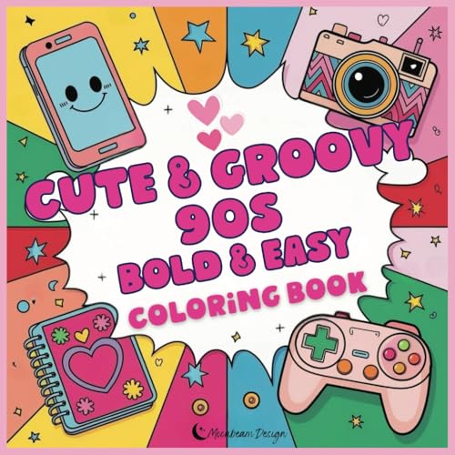 Cute & Groovy 90s Bold & Easy Coloring Book: With totally fly nostalgic accessories, cute fun patterns & girly vibes—perfect for kids, teens, and retro-loving adults