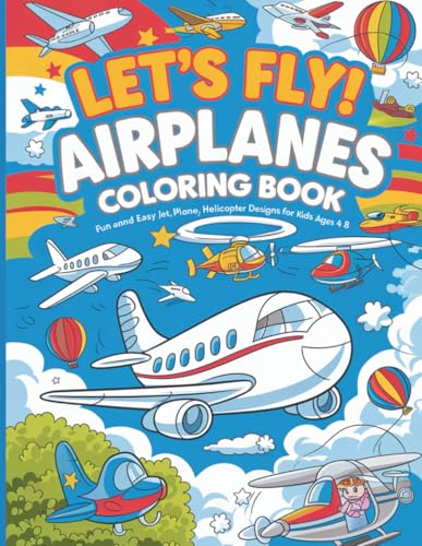 Let’s Fly! Airplanes Coloring Book: Fun and Easy Jet, Plane, and Helicopter Designs for Kids Ages 4–8