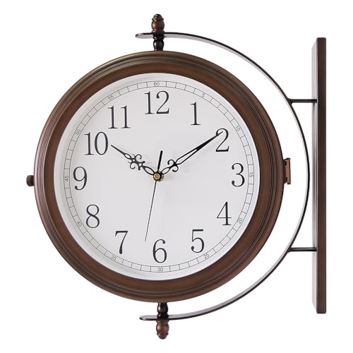 BESTIME 66264A 16-Inch Double Sided Metal Wall Clock with Antique Red Copper.Sturdy Frame,Easy Read,Garden,Home Décor,Indoor,Outdoor,Farmhouse,Yard,Station,Office,Photography Props.
