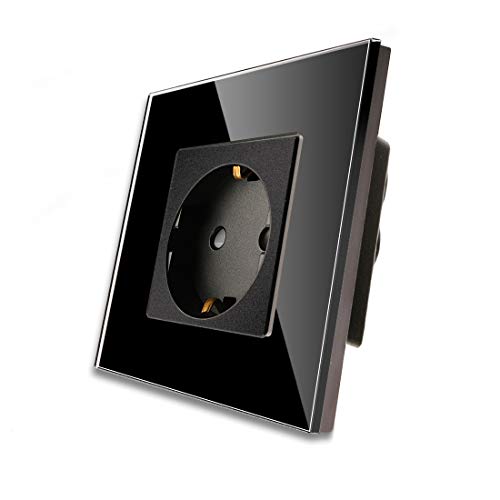 CNBingo Glass Schuko Socket Flush, Single Socket Black, Wall Socket Easy With Glass Frame