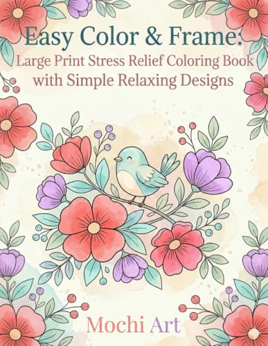 Easy Color & Frame: Large Print Stress Relief Coloring Book with Simple Relaxing Designs
