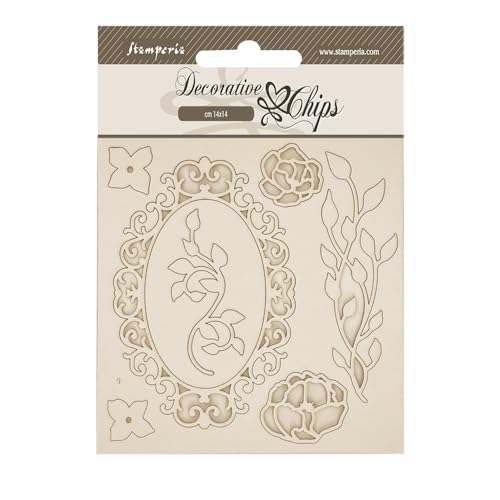 Stamperia - Decorative Chips for Scrapbooking, Albums, Cards, Bullet Journals, and More, Laser Cut Cardboard Shapes, Easy to Glue, Perfect for Crafts & Gifting (Venice, City of Art - Roses and Frame)