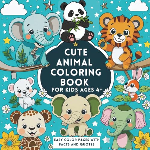 Cute Animal Coloring Book for Kids: Large Print Easy Color & Frame Pages with Fun Facts and Inspiring Quotes