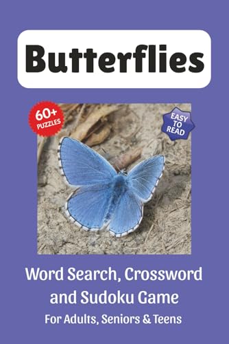 Butterflies Puzzle Book: Word Search, Crossword and Sudoku Game, Easy to Read Print about Butterflies, Moths, Caterpillar and More | 6x9 inches, 120 ... for Vacations, Holidays and Leisure Time