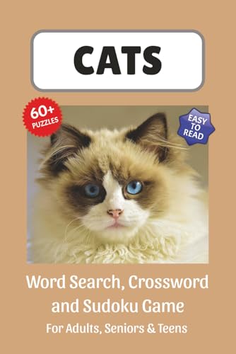 Cats Puzzle Book: Word Search, Crossword and Sudoku Game, Easy to Read Print about Cats, Kittens, Cat Breeds and More | 6x9 inches, 120 pages | 60 ... for Vacations, Holidays and Leisure Time