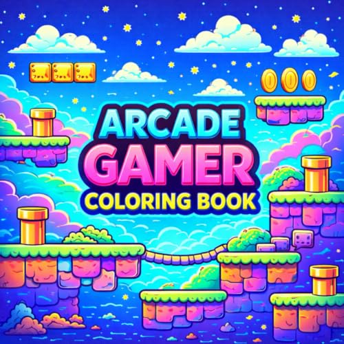 Arcade Gamer Coloring Book: 50 Fun And Easy Retro Game Levels to Color / Bold Cartoon Line Art for Kids And Adults