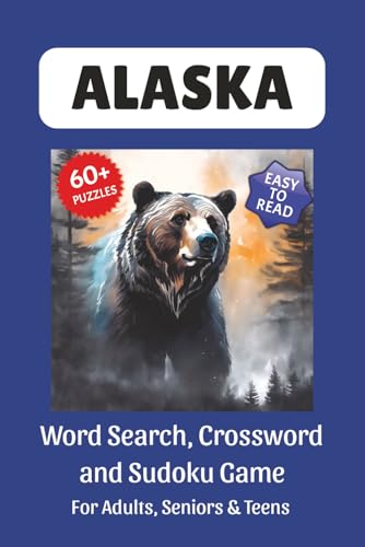 Alaska Puzzle Book: Word Search, Crossword and Sudoku Game, Easy to Read Print about Alaska, Landmarks, Wildlife, History and More | 6x9 inches, 120 ... for Vacations, Holidays and Leisure Time
