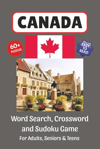 Canada Puzzle Book: Word Search, Crossword and Sudoku Game, Easy to Read Print about Canada, Landmarks, History and More | 6x9 inches, 120 pages | 60 ... for Vacations, Holidays and Leisure Time