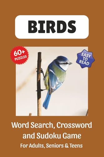 Birds Puzzle Book: Word Search, Crossword and Sudoku Game, Easy to Read Print about Birds, Wild Birds, Nature and More | 6x9 inches, 120 pages | 60 ... for Vacations, Holidays and Leisure Time