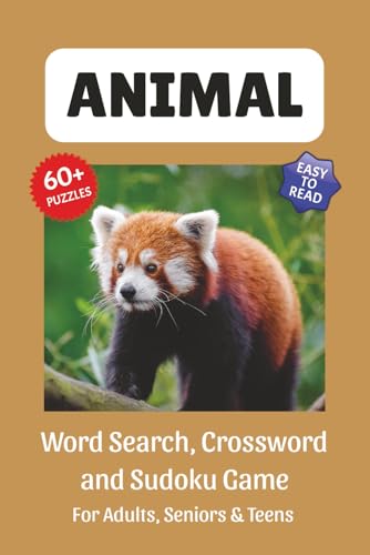 Animal Puzzle Book: Word Search, Crossword and Sudoku Game, Easy to Read Print about Animals, Wildlife and More | 6x9 inches, 120 pages | 60 Puzzles...Gifts for Vacations, Holidays and Leisure Time