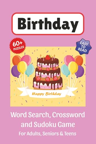 Birthday Puzzle Book: Word Search, Crossword and Sudoku Game, Easy to Read Print about Happy Birthday, Wishes, Happy Time and More | 6x9 inches, 120 ... for Vacations, Holidays and Leisure Time
