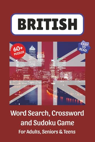 British Puzzle Book: Word Search, Crossword and Sudoku Game, Easy to Read Print about British, England, Scotland and More | 6x9 inches, 120 pages | 60 ... for Vacations, Holidays and Leisure Time