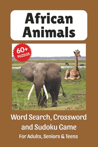 African Animals Puzzle Book: Word Search, Crossword and Sudoku Game, Easy to Read Print about Big African Animals, Animals, Safari and More | 6x9 ... for Vacations, Holidays and Leisure Time