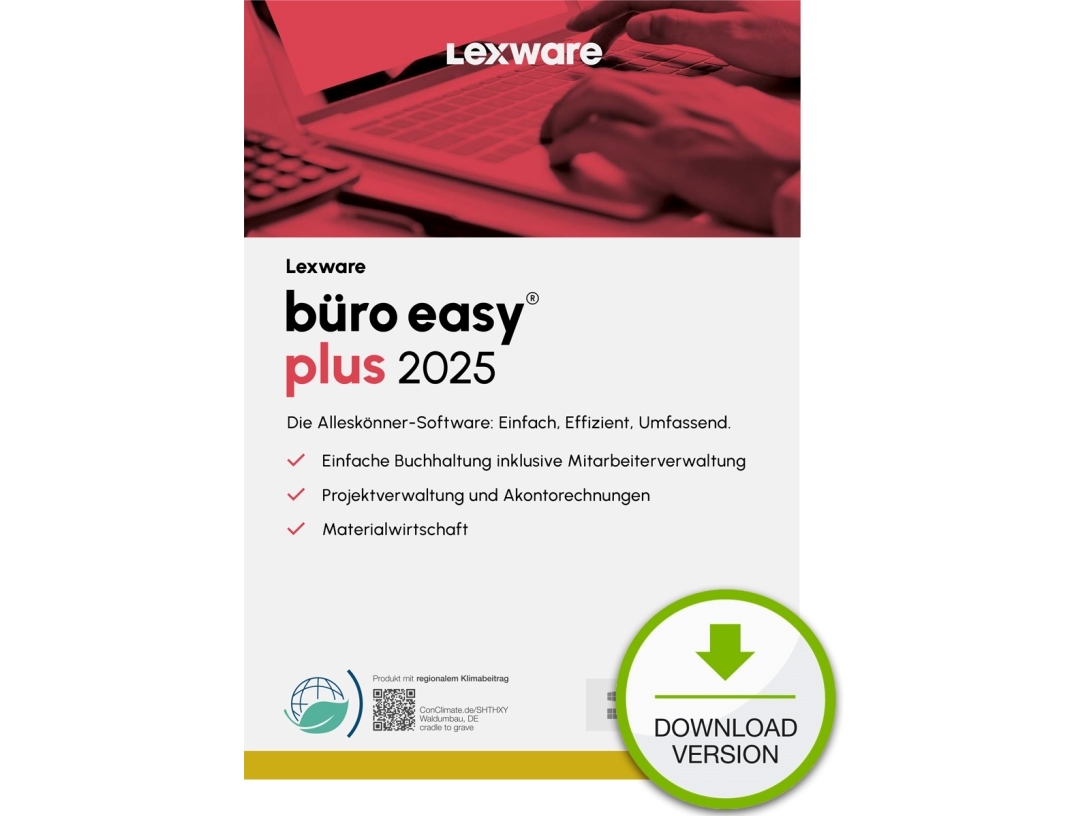 Lexware Büro Easy Plus 2025 Download Jahresversion (365-Tage), Bokföring, Esd (Electronic Software Download), Tyska, 1 År, Windows 11 Enterprise X64, Windows 10, Windows 11 Home, Windows 10 Education, Windows 11 Pro,...