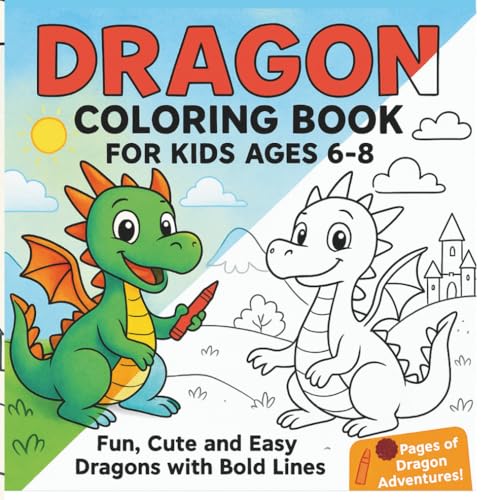 Dragon Coloring Book for Kids Ages 6–8: Fun, Cute and Easy Dragons with Bold Lines – Perfect for Boys and Girls: Fantasy and Steam-Inspired Coloring Pages for Creative Young Artists and Children