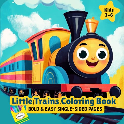 Little Trains Coloring Book: 40 Bold and Easy Single Sided Pages: For Young Kids 3-6: Cute Steam Trains, Dinosaurs, Animals & Holiday Fun