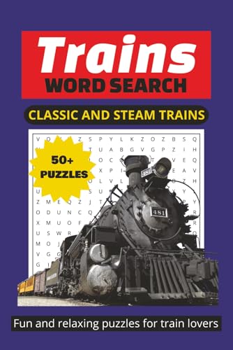Trains Word Search Puzzle Book: Word Searches with Easy to Read Print about Trains, Classic Trains and Steam Trains. 6x9 inches, 110 pages. 50+ ... for Fathers day, holidays and free time.