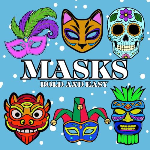 Masks Coloring Book: Bold and Easy Large Print for Adults, Seniors, Beginners. Masquerade, Tiki, Carnival, Sugar Skulls, Steam Punk and More