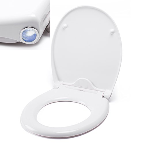 MSV WC sits toalettlock Duroplast med nedsänkt automatisk och knapptryck kan tas bort för rengöring i vitt – Easy Fix Clip System – med LED-nattlampa