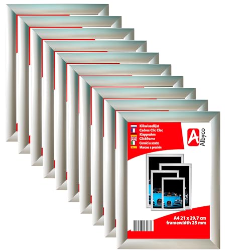 Albyco 10 stycken A4-vikram, klickram, utbytbar ram, Easy-Click-system – fotoram, ram, A4-format – 29,7 x 42 cm – profilbredd 25 mm – aluminium – antireflexskyddsskiva.