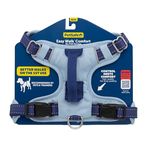 PetSafe Easy Walk Deluxe anti-drag-sele, minskar kvävning och hosta, utrustad med reflektorer, storlek S, blå