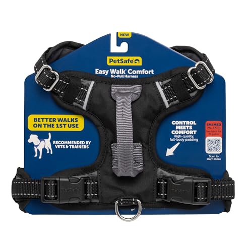 PetSafe Easy Walk Harness for Dogs - Pull-Free Walks - Patented Martingale Loop Design - Front Chest Leash Attachment - Comfort Straps - Breathable Harness Design - Medium/Large, Charcoal/Black