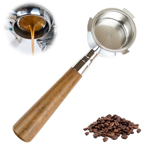 Golvlös filterhållare 51 mm för DeLonghi Dedica EC680/EC685, 51 mm filterhållare av rostfritt stål med 3 öron och valnöt, trähandtag, filterkorg 0,3 mm porer